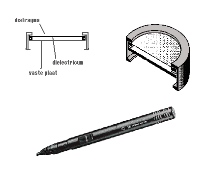 wanneer er geluid tegen diafragma komt deze zal meetrillen naargelang het geluidsniveau harder of zachter meetrillen deze trilling zullen een stroompje laten vloeien. indien hij aangesloten is aan een phantoom voeding (+48v) in werkelijkheid ligt die lager en kan soms met bateryen gevoed zijn maar deze komen minder voor Deze micro wordt het meest gebruikt door de vele voordelen die hij heeft :